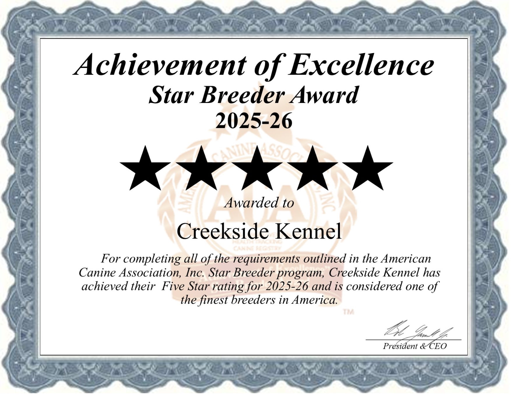 Creekside Kennel Professional Dog Breeder and Handler © 2026 |